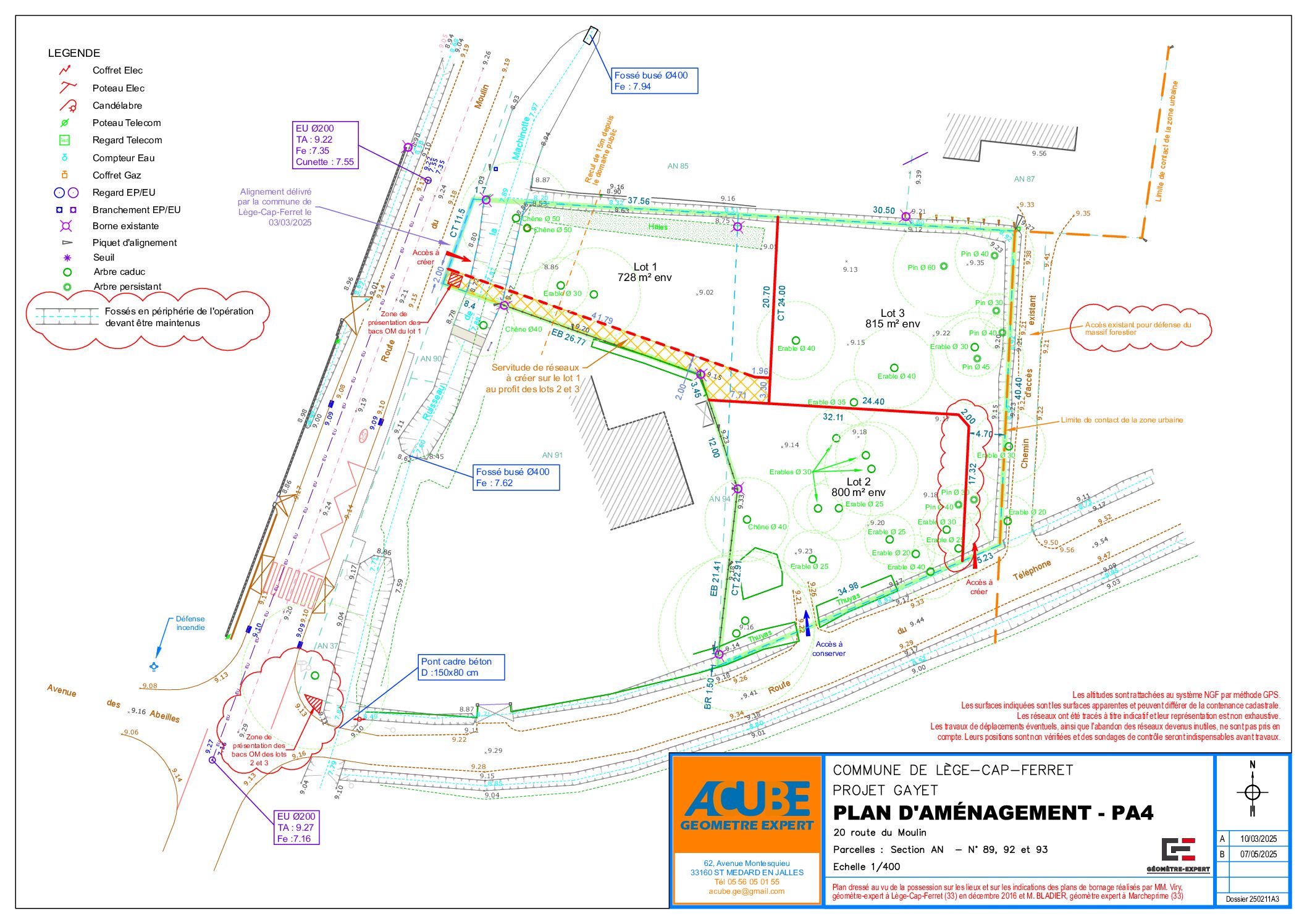 Issu d’un permis d’aménager pour la création d’un lotissement de 3 lots situé à Lège-Cap-Ferret, dans un secteur calme et recherché, terrain à bâtir de 815 m² entièrement viabilisé et offrant de nombreuses possibilités de constructions. Idéal pour un projet résidentiel de qualité, à proximité des plages, du bassin, des commerces et des pistes cyclables.
